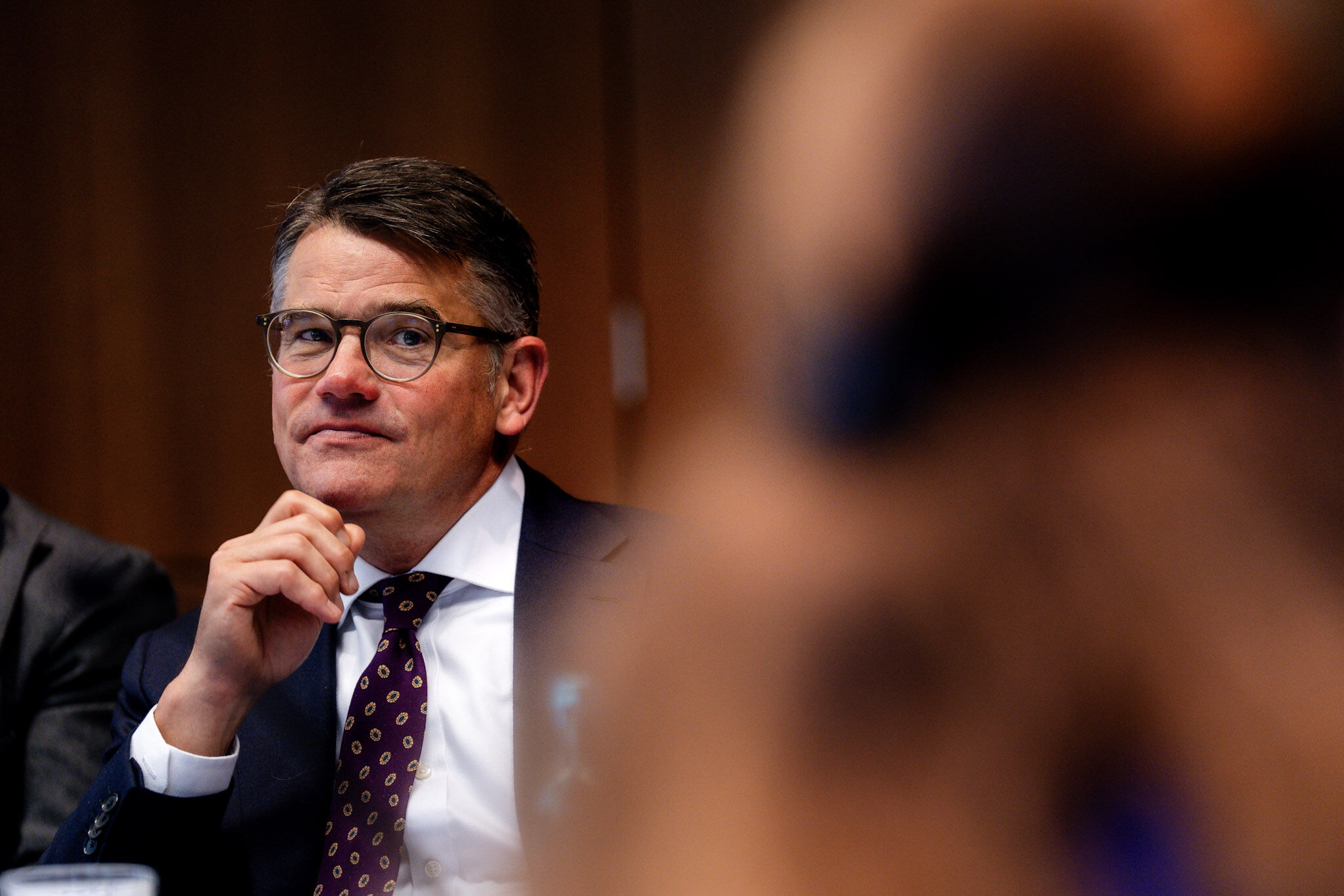 Ministerpräsident Boris Rhein hat sich in Frankfurt mit Spitzenvertretern aus dem Finanzbereich ausgetauscht.